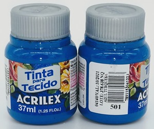 Tinta para tecido 37 ML super resistente a lavagens, excelente cobertura, fixação a frio, alto rendimento, cores miscíveis entre sí.