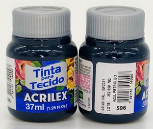 Tinta para tecido 37 ML super resistente a lavagens, excelente cobertura, fixação a frio, alto rendimento, cores miscíveis entre sí.