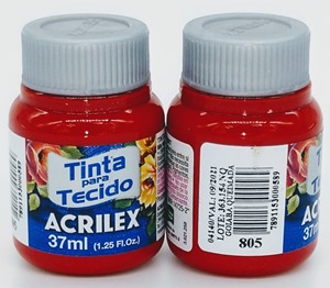 Tinta para tecido 37 ML super resistente a lavagens, excelente cobertura, fixação a frio, alto rendimento, cores miscíveis entre sí.
